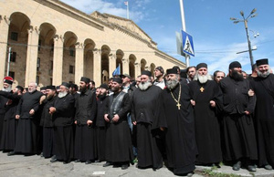В Грузии многие жители проявили сознательность и вышли на шествие против гей парада, в том числе и Грузинская Православная церковь. Священники я так понял не дрались. Я в этой акции ничего плохого не вижу. Даже немного горжусь сознательностью народа. У них же с детства очень серьезно подходят к воспитанию детей, закладывается отношение между мужчиной и женщиной.