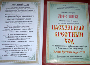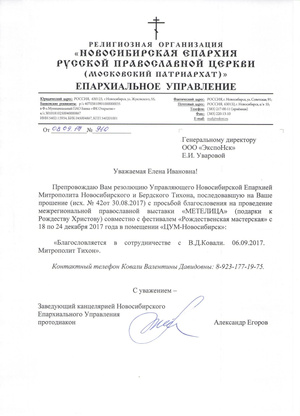 С 11 о 16 октября состоится VIII межрегиональная выставка с международным участием «Православная осень». Выставка проходит по благословению Митрополита Новосибирского и Бердского Тихона, при поддержке мэрии г. Новосибирска и Администрации Новосибирской области. Тема духовно-просветительской программы выставки «100-летие восстановления Патриаршества Русской Православной Церкви», «135-летию Императорского Православного Палестинского общества», «80-летие Новосибирской области».