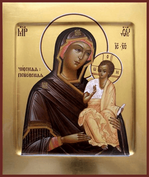 Чудотворная икона Божией Матери, именуемая Югская, явилась в начале ХVII века старцу схимонаху Псково-Печерского монастыря преподобному Дорофею.