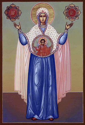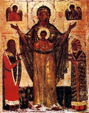 Пресвятая Богородица заступилась за Землю русскую. Князь приказал своим войскам отступать от Угры, желая дождаться перехода татар, враги же решили, что русские заманивают их в засаду, и тоже стали отступать, сначала медленно, а ночью побежали, гонимые страхом. В благодарность за освобождение России от татар и был установлен праздник в честь Божией Матери.