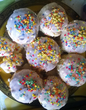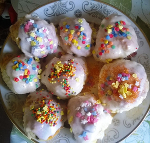 День сегодня просто удивительный!.. Встала я не слишком рано, только в 8. Итого в десятом часу начала колдовать над опарой. Яйца, купленные в Ашане, оказались двухжелтковыми, что прямо сильно порадовало. Дрожжи - просто термоядерные, потому что к часу куличи уже были готовы! Пока не фотографировала - они на бочку лежат, остывают. Потом буду кунать в глазурь и посыпать посыпкой.