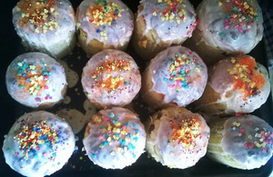 10. Если кулич начинает сверху пригорать, его прикрывают сухой бумагой.