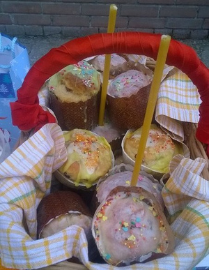 у нас сегодня все было тихо и по-семейному. На Утренней Литургии причастила крестницу, потому освятили наши с ней корзиночки