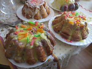 А вообще, он устало выглядел в пятницу, работы слишком много у него.Ну вот, как и обещала, выкладываю основные пасхальные блюда нашего стола, всякие обычные блюда, типа салатов и т.д. не буду выкладывать, только приуроченные к Празднику.