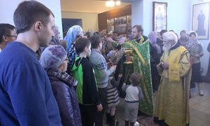 ну не настолько немного, сейчас смотрю на страничку храма во имя св.мч. Вонифатия и понимаю, что чтобы передать количество людей надо было фотографировать с тылу. А тут мы фотографировали со стороны амвона, и не видно что там дальше очень плотненько до самого входа стоят люди. Но храм на самом деле небольшой, и детишек много, да.Сейчас только отдышалась и могу отписаться.