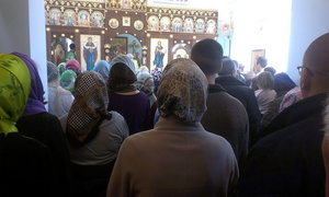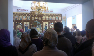 Если бы я Причащалась сегодня, то пришлось бы изрядно потолкаться и душновато было, наверное, тем, кто в середине стоял, хотя открыты были и двери и окна. На Пасху, наверное поеду в Троицкий, там все-таки пространства побольше, а на ночную можно и на березку, т.к. пешком ночью возвращаться издалека боязно.