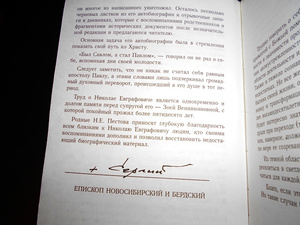 Литературу на время предоставила прихожанка одного из православных храмов Новосибирска. Скажу, что составленная книга на основе дневника профессора Н.Пестова , воспоминаний его жены, детей, внуков, православных прихожан, и фрагментации исторических документов, епископом Новосибирским и Бердским Сергием (Соколовым) "От внешнего к внутреннему" Жизнеописание Н.Е. Пестова имеет для российских потомков поучительную историю.