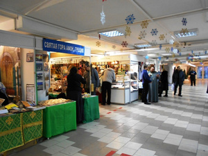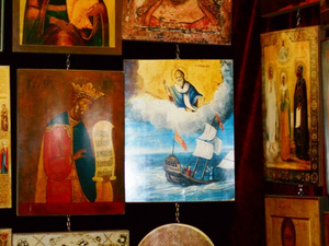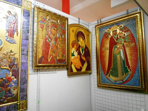 Рядом с эскалатором на третьем этаже, встречаются необычные ремесленные подделки. А также традиционные рукописные иконы, в работе над образом использовались натуральные краски.