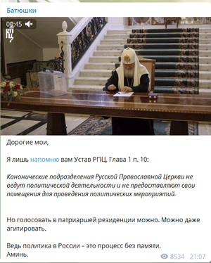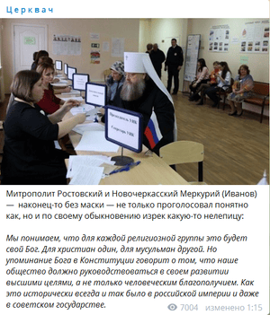 Увидел, что российские верующие граждане проголосовали не внутри Церкви и не на церковной службе, а где-то там снаружи и на избирательных участках.