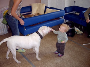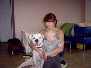 Пока ничего не получается с Максиком с точки зрения его ПМЖ. Он уже совсем выздоровел, ему разрешили играть с маленьким Никитой, вернее Никите разрешили контактировать с Максом. Макс настоящий нянь, очень корректно ведёт себя с ребёнком, вылизывает его с головы до пяточек! Инна, юная женщина, мама Никиты, уже влюбилась в Макса совсем, но её муж Андрей гораздо более сдержан и Макс у них, вероятнее всего, не останется. Хотя условия у них просто обалденные - большой коттедж, много свободной земли. Макс подружился со всеми обитателями - двумя кобелями, старшей в хозяйстве сукой, двумя котярами. Ведёт себя ну очень корректно, ни разу ни на кого не рыкнул!