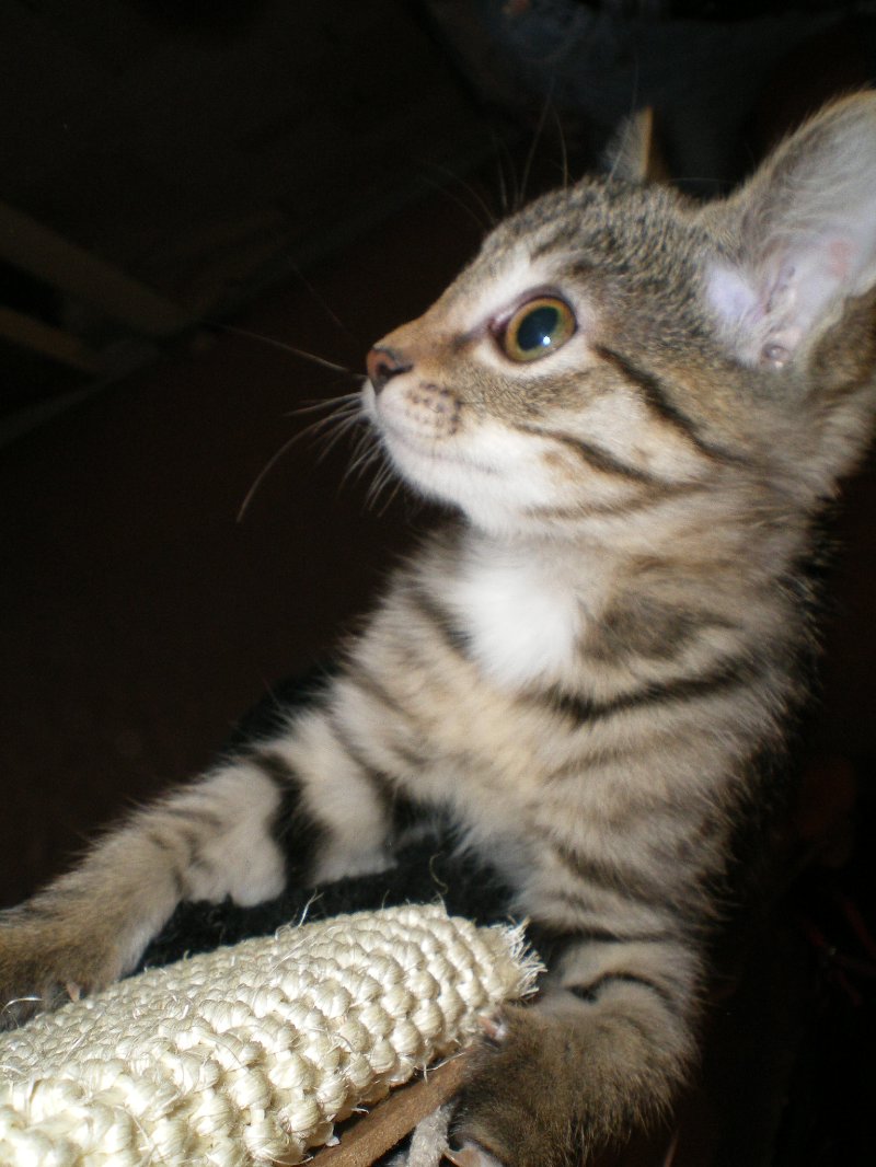 Запуталась в этих близнецах... Эта котомордочка сейчас у меня, правильно? С утра ребенок опять самостоятельно сходил на горшок, по большим делам пока она не ходила, приду вечером домой - буду искать. С удовольствием упражняется на когтеточке. Сметане, вареной колбасе и рояловским бэби-кошарикам предпочла Марсовы консервы