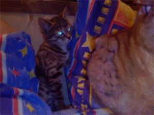 Только что малышку унесли в новый дом. Счастливой ей кошачьей жизни!!!