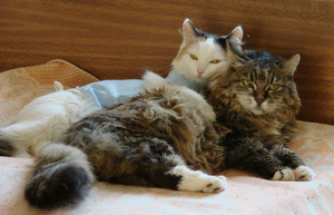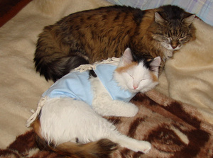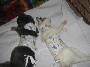 Нужны фотки кошек после операции. Может кто фотографировал своих питомцев в попоне?