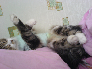 Нашла в неразобранной папке тока одну ...но она не очень прикольная...Маська лежит на спинке и лапками перебирает...кач-во тоже так себе.