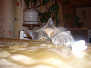 Моим ничего не перепадало, они просто, готовы жрать целый день. Нюська до Дашки ела два раза, поначалу я думала - конкуренция. Но если Дашке пока поправится не лишнее, то Нюся дама не худенькая. Ну и вообще, ети злыдни в пять утра садятся перед дверью и Дарья начинает муркать, во весь голос. Выпускаешь - если в чашке у Цезаря ничего нет, то Дарья ходит по квартире и требует, если есть - то хрумкает, а Цезарь её гоняет... Нюся, дама молчаливая, она просто садится возле меня на постель и гипнотизирует...
