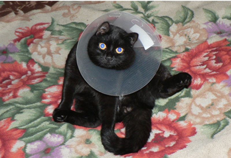 Я своему зверю пыталась делать картонный, так он как попрыгает туда-сюда, воротнику хана! Лизаться тоже пытался, но все нормально. Я его марганцовочкой поливала, вот это ему не нравилось.