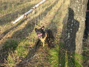 Хотя относительно породной принадлежности у меня есть сомнения, возможно не чистый боксер, а с примесье какого-то "бойца". Но знаток породы по фоткам мне говорила, что боксер