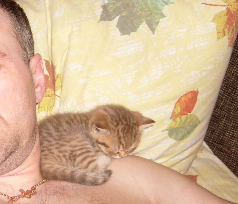 Какие мои были маленькие и теперь. Гришеньку мы взяли у перекупов, долго лечили, лишай был и вирусная инфекция, рос слабенький, но очень любимый. Он и сейчас самый любимый, знает об этом, вьет веревки, строит меня, командует. Я не противлюсь, меня забавляет. А вот мужу подчиняется бесприкословно.