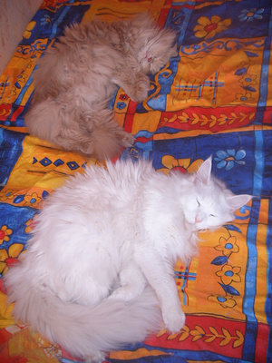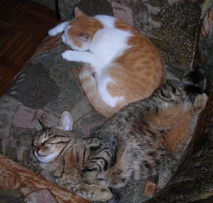 Да, Наталья - это твои котэ друг друга нашли. Даже на "котёнко-фотах" - друганы-близнецы по поведению )) Досталось вам с ними ...