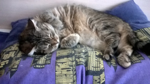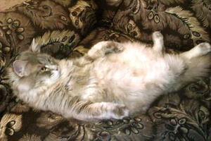 Это наш именинник, налопался вкусняшек, которые ему мама в честь дня рождения дала и лежит в любимом кресле отдыхает, видимо думает о том как хорошо быть любимым котиком :))