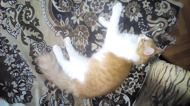 А у меня 10-го Мурру 3 года исполнилось (дата тоже условная). Из недоверчивого трусливого подвалыша вырос шикарный ласковый красавец. Оказавшийся еще и заботливым "папашей" для Винсика.