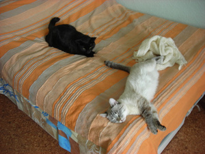 Они не дрались, судя по всему не собираются. Единственное сейчас думаю, как объяснить Тише, что Кася его не съест - почему-то он его боится, видимо слесари в подвале к нему не слишком хорошо относились.