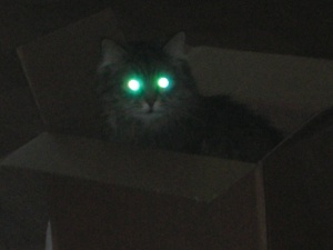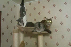 Привезли честно Ричем заработанный приз - мясо для кошек от Барбосса. Пыжик сразу подсветку на всю мощь включил.