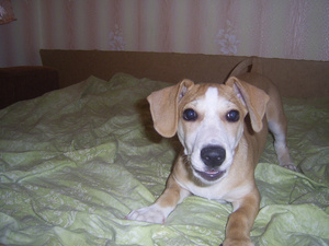 А Бенька мне больше джек-рассела напоминает. Лен, а вот она сказала в корме не ограничивать: это как? Я вот дома сегодня, кормлю чаще и больше, всё равно сметает всё, раздулась уже, как винни-пух