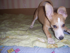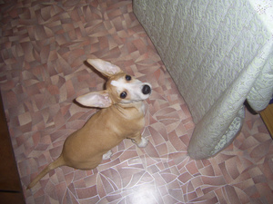Сделала сегодня пару фото моей любимой мордочки. Попа слегка округлилась, ребрышки скрылись, ушки висят как могут. На фото назад отвел ухи-лопоухи, так как не понимал что происходит (телефон, лакомство показывают, а не дают).