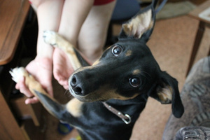 Хотя дресировке поддается, но все равно после того как похвалишь - еще минут 10 бегает радуется, никак не успокоишь