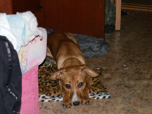 Здравствуйте!!! Хочу показать свою таксу. Когда брали, говорили без примесей.Хотя....какая разница....Итак, моя рыжая шмакодявочка...