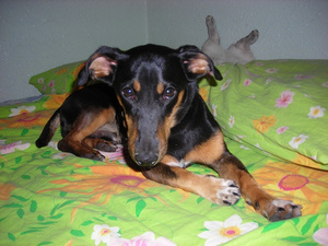 Фигасе, кобаненок! Вот тебе и помесь таксы.... А ведь был такой кроха, на ладошке помещался... Марин, Линда такая же гигантская?