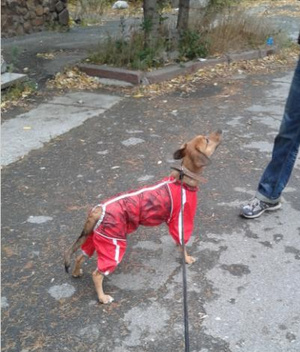 А по поводу одежды. Тоже практикуем иногда из-за дрожи в холода. И с нормальным комбезом никак не определимся. Попонку связала ему, но она большевата, резинки перевязывать буду.