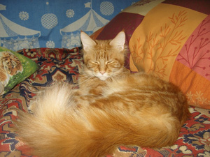 Точно, не забалуешь! Так и ждёшь подвоха из-за каждого угла в квартире... Да, стала лохмаче, толще и хвостище длинющий! Ксаня тоже очень красивая девочка. Сёстры же! Привет ей от нас