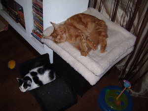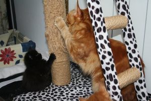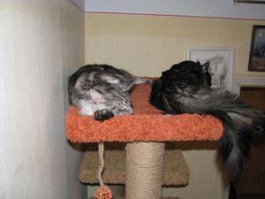 а теперь еще и побегушки по квартире в разные углы,тем самым они Гланю выводят из себя,она уркает,мыркает,а те ноль внимания на мамашу