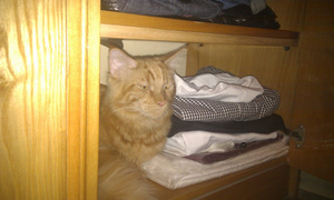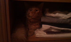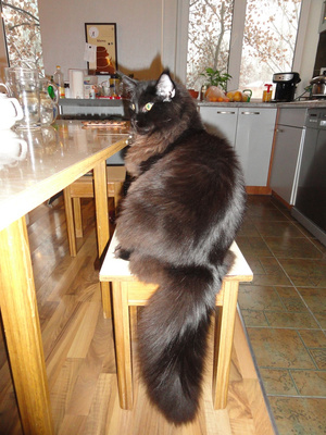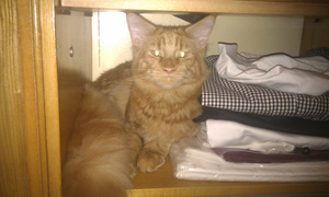 Прочитала тут, оказывается наш Даконя нормальный мейн-кун. Так-же лежит у входной двери сколько не гоняй, электризуется, пьёт из ведра во время мытья полов, проверяет все сумки на вынос и внос и т.д.