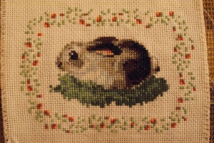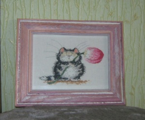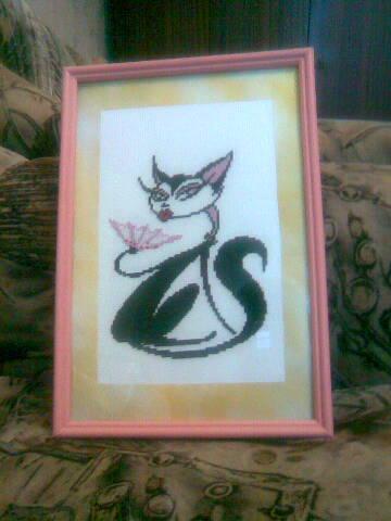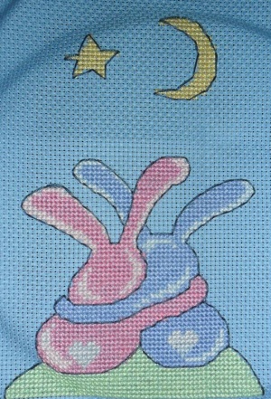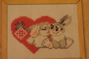 Я нашла фото. Кошки все подарены. А зайцев вышила очень много на подарки. Они такие прикольные.