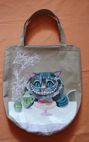 Я Лениными сумками восхищалась и раньше. Она еще футболки расписывает. Все нет денег ей заказать с такой мордулей футболку.