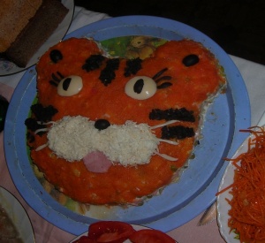 Какие вы молодцы, девочки! Я то криворукая, для меня пуговицу пришить - подвиг, горжусь потом пол-дня! Люблю готовить, вот фотки салатиков, правда, идею слизала из инета, но готовила сама!