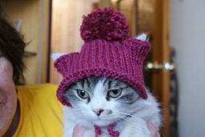 Шапочка прочто чудоАленка, эту шапочку вязали для Дэника Лениного. Зачем она коту дома?Не отбирайте ее у кот )))