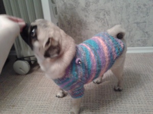 собака счастлива новой обновке)она вообще любит(ка ни странно