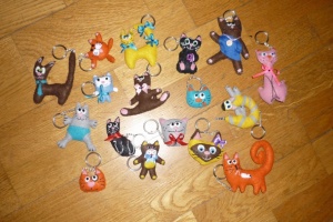 Да уж, у нас кошки- везде! Еще не все готово, не все заснято... Оля отчасти уважает мое увлечение, отчасти... Ну брелочки же она не для меня делала, для своих друзей! Она тоже очень любит кошек! И кошки- живые и "виртуальные" отвечают ей взаимностью... Это то, что ей особенно удается. Ну, еще у нас в доме много бабочек, и всякой морской живности- в смысле, поделок на темы...