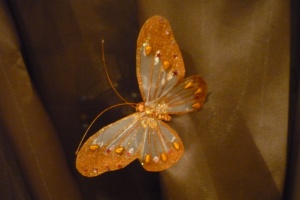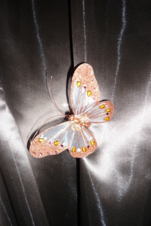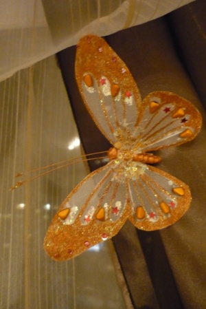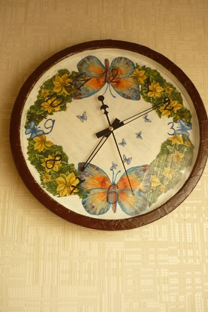 Ну вот, например- бабочки... Часы у Оли в комнате- изначально просто чисто белые, и- бабочки, "живущие" на шторах; размах крыльев- около 20см...
