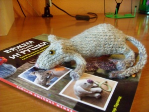 Первое моё творение из него - крыса (самая легкая) - сидела до трех ночи...вчера начала вязать кота (посложнее) - до двух ночи...