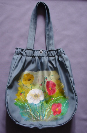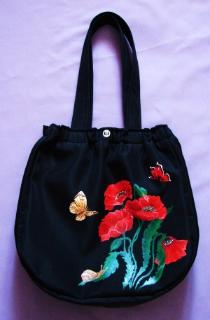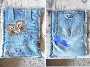 Ну, и я понемногу буду выкладывать- не свое, я не умею так. Это дочка у меня мастерица. Вот, кое-что позаимствовала из ее фотоальбома в контакте. Начинала она с рисунков по ткани- обновляла старую одежду, шила какие-нибудь поделки из старых джинсов- и разрисовывала... Ну вот- на этом компе не активируется- точнее, вообще не появляется- кнопка "загрузить файлы".
