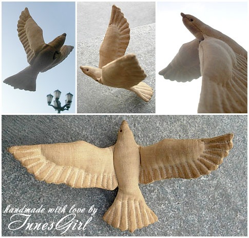 игрушки шьются из белой бязи (или из любой другой ткани, желательно натуральной), затем окрашивают составом на основе кофе.