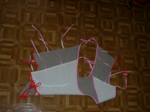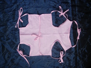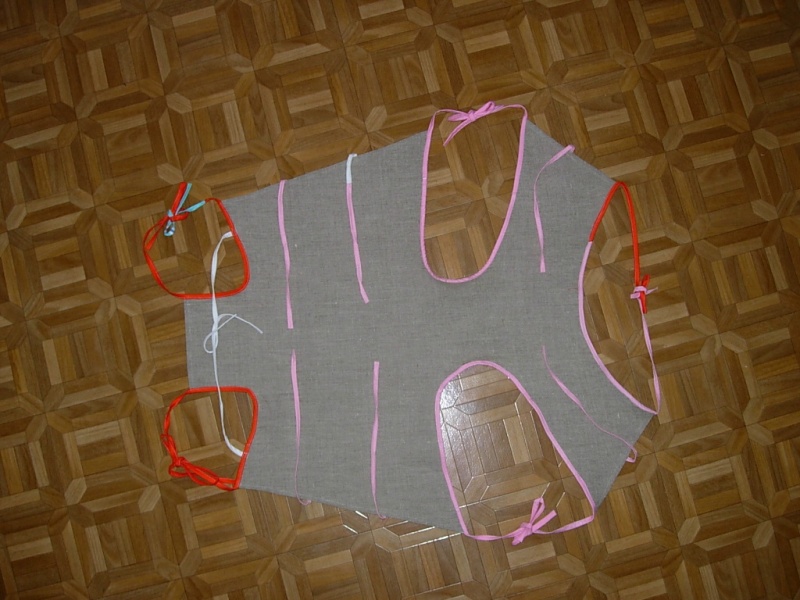 ага, на кошачьих вообще завязками грешат - у меня вот как на фото (розовые, красные попонки) - я так больше не делаю, я теперь пришиваю ещё по дополнительной завязке сзади, как на собачьей)