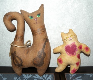 слева кошка сделанная на мастер-классе больше года назад, справа - только что законченный "позитивный кот"