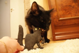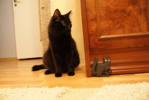 Вот фото черного кота без другого черного кота. У меня дома очень темно, хоть при эл. свете, хоть при дневном, вот что получилось. Может еще на улице щелкнуть?