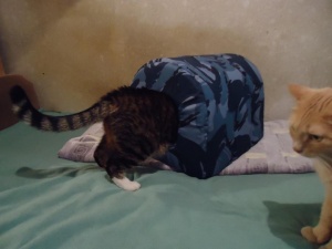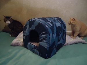 Сшила сегодня домик для Дусеньки, она у нас любит прятаться, а его сразу окупировали два кошака